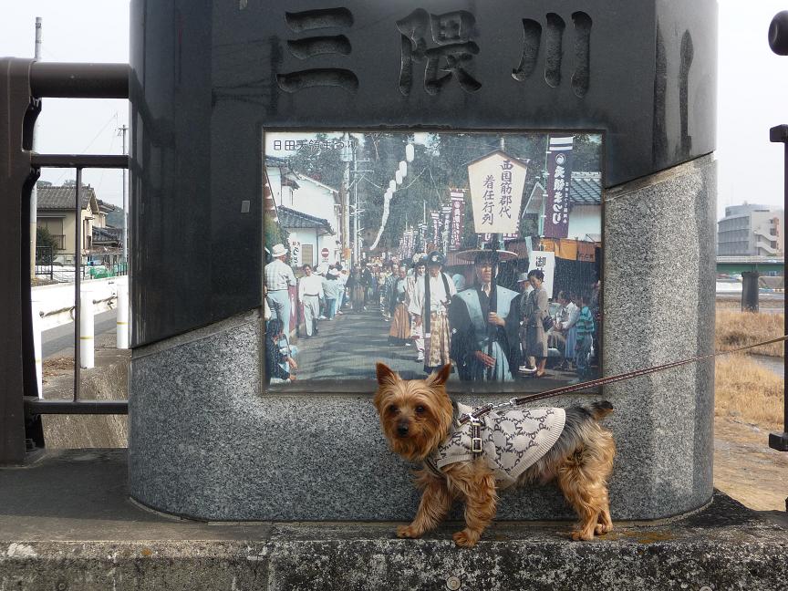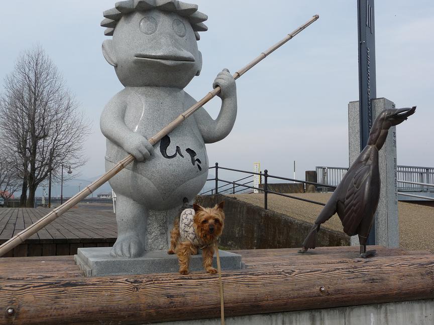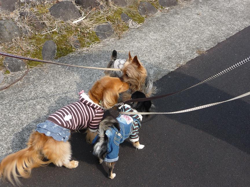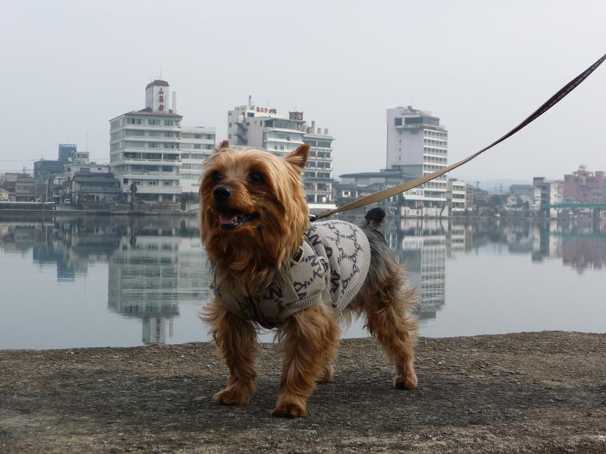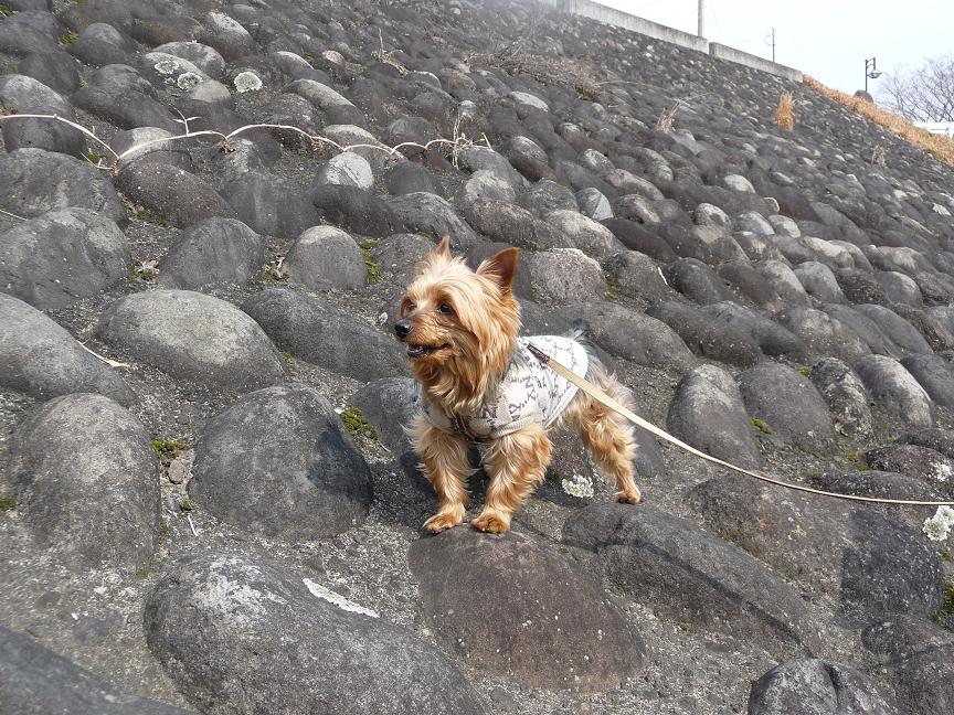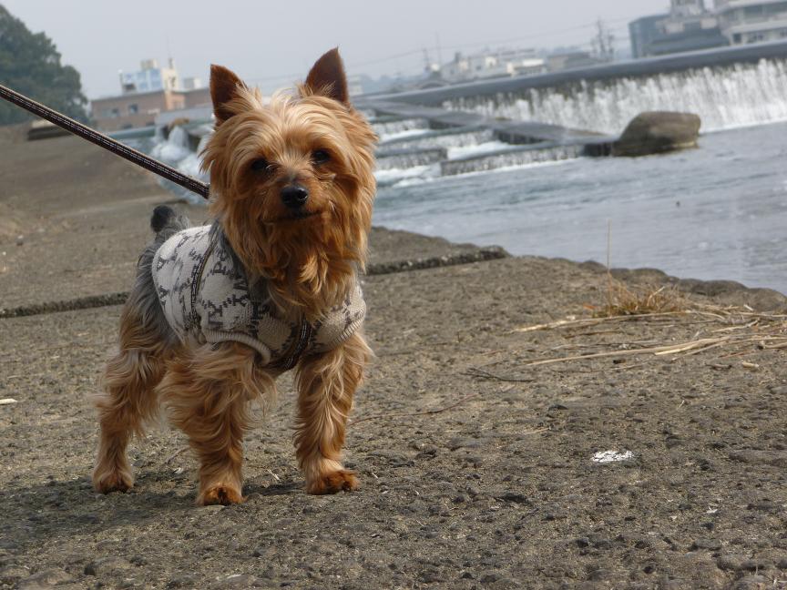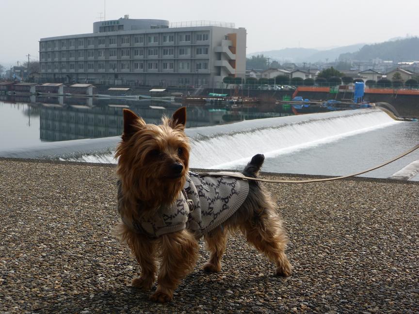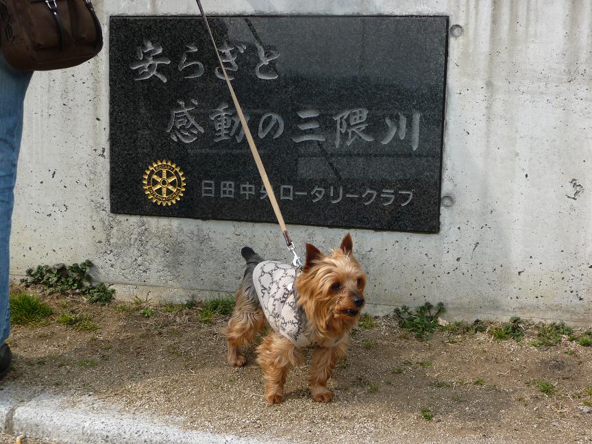 すぐ横の三隈川の河川敷でお散歩開始です、さっそく地元のわんちゃん達に会いました。どっちとも女の子だよ。