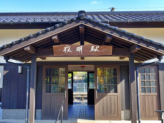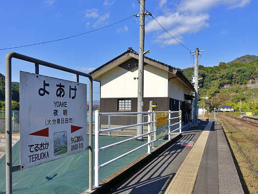 ここがJR久大本線の夜明駅です。ここは無人駅でシンプルな造りの駅舎ですが、まだ真新しい感じのするきれいな駅舎でした。ここまで駐車場からは200mほどの距離でした。