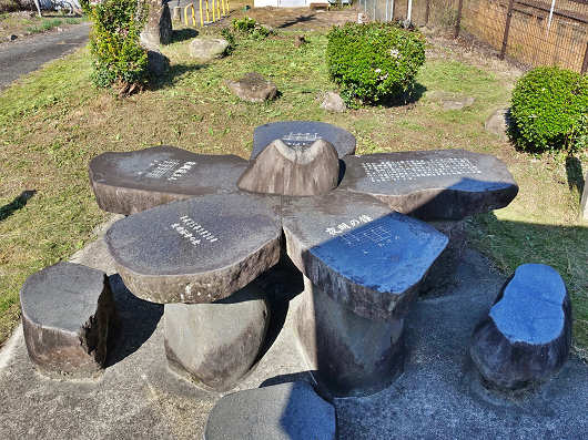 そしてこちらのモニュメントは、平成24年に発生して大被害を出した九州北部豪雨で夜明地区の川から出てきた石を桜の形に加工して、災害復興を祈願しているものだそうです。