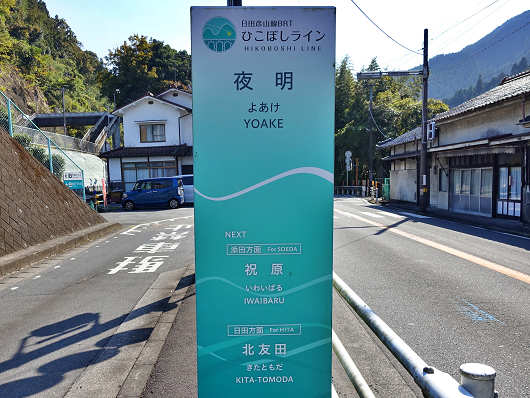 夜明駅はJR久大本線の他に福岡県北九州市小倉南区まで続く「日田彦山線」の始発、終着駅にもなっていましたが、九州北部豪雨で復旧困難な被害を受けてレールが撤去されて、今はバス代行運転(BRT)によって運行されているんですよね。