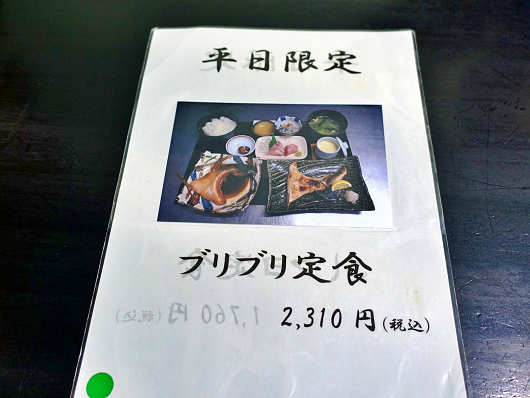 私は通常のメニュー表とは別に置かれていた平日限定と書かれた「ブリブリ定食」を注文しました。写真ではこの料理がいちばん豪華に見えたんですよね(笑)