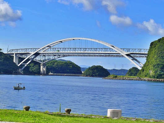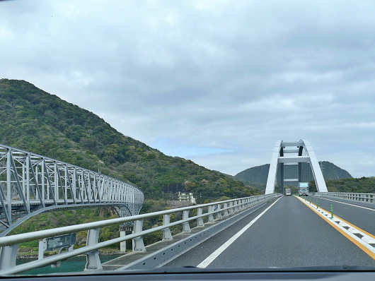 ふたつの橋は並行するように架かっていて、これから宇土半島と天草諸島の間にある「三角の瀬戸」を天城橋経由で越えて天草諸島へと渡ります。