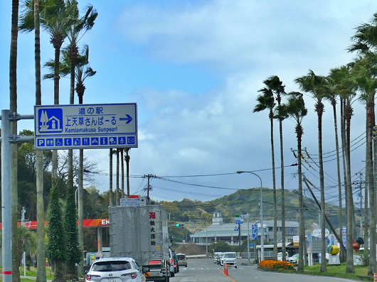 国道266号を数kmほど先へ進むと道の駅「上天草さんぱーる」の標識が見えてきたのでトイレ休憩を兼ねてここに車を停めました。