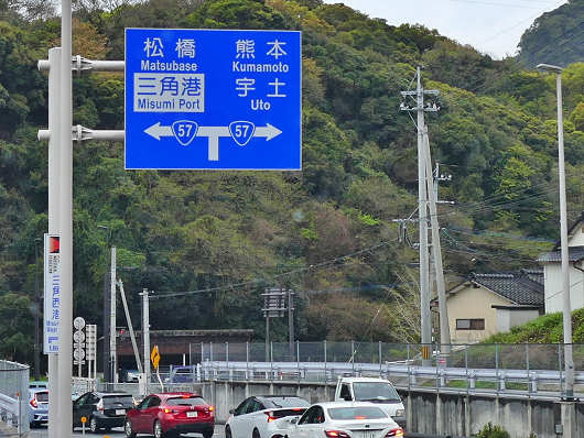 天城橋の架かる三角大矢野道路の終点は国道57号へ繋がっていて、昨日は宇土半島南側の国道266号を松橋方面から走ってきましたが、帰りは宇土半島北側の国道57号を走りました。