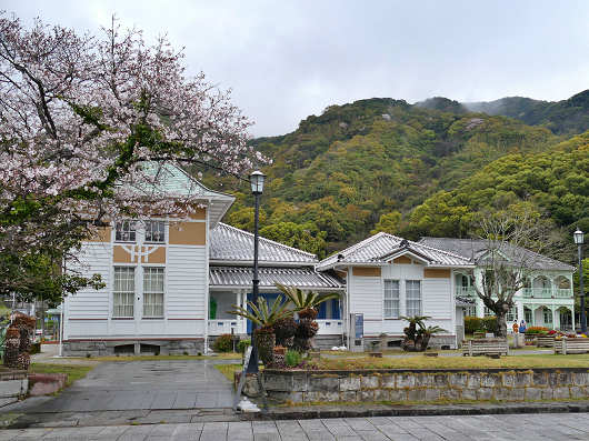 この時はかなり雨が降っていたので、明治時代に造られた岸壁の周辺を数百mほど歩いただけですが、国道57号を挟んた山側にも明治時代の建物や展望所などもあります。