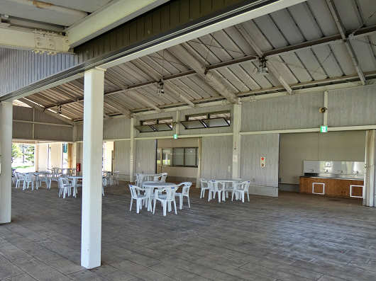 物産館の斜め前には大きな屋根の下にイス、テーブルが置かれていて、その奥には洗い場のようなものもありましたが、ここは無料で使える飲食・休憩コーナーなんでしょうか?