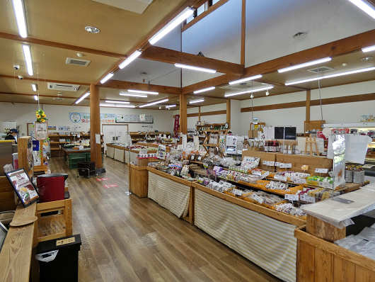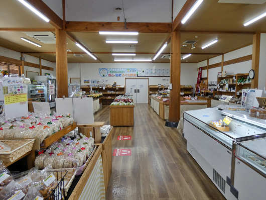 敷地内を見て廻ったら物産館へ入りました。館内はとても広くて地元産野菜やお土産品などがたくさん並べられていました。