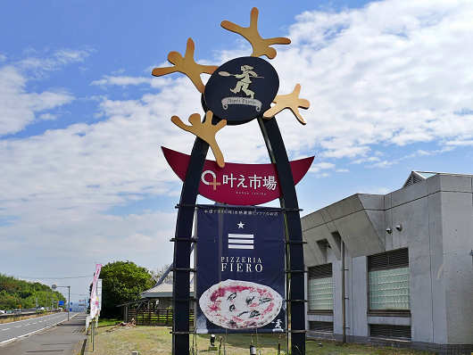道路沿いにはこの様な看板も立てられていました。物産館は「叶え市場」というようですが、その下にはピザの写真と「PIZZERIA FIERO(フィエロ)」と書かれていました。このお店は道の駅の敷地内にあるピザがとても美味しいお店です。