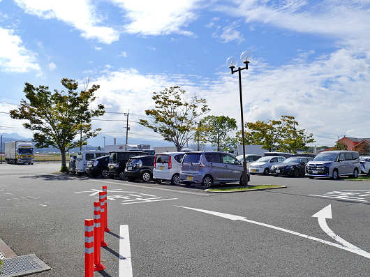 道の駅の駐車場には普通車65台、大型車11台が停められます。収容台数だけを見ると先ほど訪れた道の駅 やまくに よりも多くの車が停められますが、普通車の駐車場を見ても分かるように広々とした感じは無くて、ぎっしり詰め込んでいるって感じでした(笑)