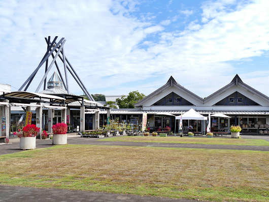 この道の駅は広い芝生広場の中庭を取り囲むように建物が建っていて、正面に見えるのは物産館です。そして画像には写ってませんが、左側にはトイレ、情報・休憩コーナーがあり、右側にはテイクアウトコーナーと、ピザ店の「PIZZERIA FIERO(フィエロ)」があります。