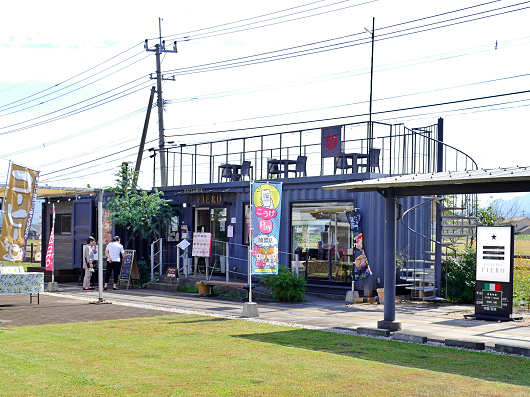 そして中庭沿いにさらにぐるりと廻ると、コンテナハウスを改造したようなお店がありました。ここが道路沿いにも看板が出ていた「PIZZERIA FIERO(フィエロ)」です。ここは原料となる小麦粉やチーズなどを本場のイタリアから仕入れて、地元産の野菜などをトッピングしたピザを職人さんが焼き上げる本格的なピザのお店です。