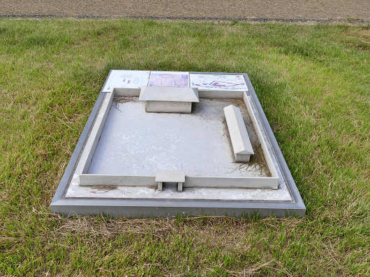 遺跡跡は埋め戻されて芝生広場になっているので、ここにあるのは1m四方程度の小さな復元模型だけなんですよね(笑)
