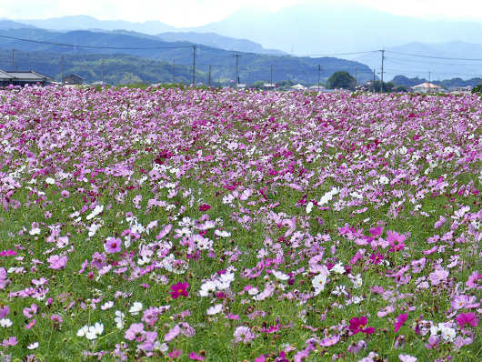 遺跡跡広場の周辺には休耕田のような畑が広がっていて、毎年この時季になるとコスモスが見頃を迎えます。ここは西日本最大級の規模を誇る中津市の「三光コスモス園」からも近いので、いつも三光コスモス園と併せてコスモス観賞に訪れているんですよね。