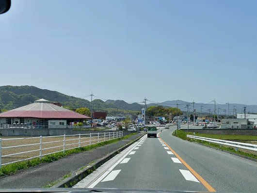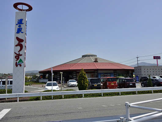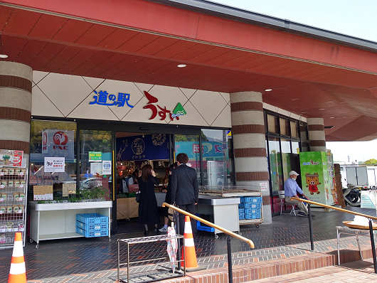 田んぼが広がる中をしばらく走っていると、左側に大きな屋根の建物が見えてきました。どうやらここが「道の駅 うすい」のようです。