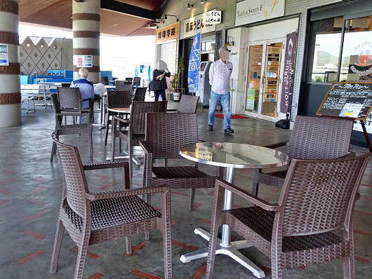 そしてその前にはイス、テーブルが数セット用意された小さな飲食ブースがありました。この光景を見たらやっぱりここは道の駅だったんだと実感しました(笑)