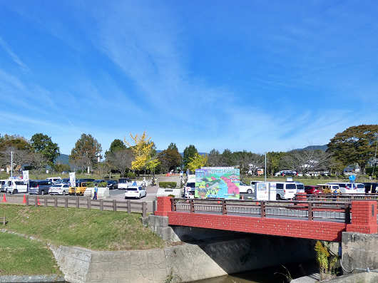 ここへはほぼ毎年この時期になると巨大わらかがしの見物に訪れていますが、この日は平日にも関わらず駐車場は満車状態で、駐車場の奥にある広場が臨時駐車場になっていて、車の誘導をしている人も何人かいました。