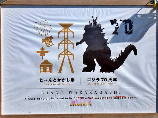 この画像はりゅう君と2016年に初めて筑前町を訪れて、わらかがしの見物をした時のものです。この時のテーマは「シン・ゴジラ」でしたが、今年のゴジラ-1.0と比べると、この時のゴジラはちょっと可愛らしい感じがしますね(笑)
