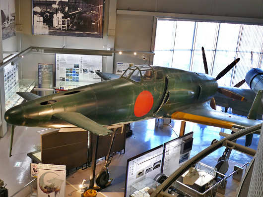この画像は昨年の12月に大刀洗平和記念館を訪れた時のものですが、この展示されている原寸大の戦闘機が、異端の翼と呼ばれてプロペラが機体の後部についている旧日本海軍の局地戦闘機「震電」です。