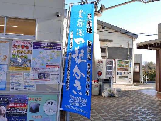 蒸し牡蠣を食べるのを諦めて道の駅を出発しようとしたら、物産館の入口には「豊前海一粒かき」の幟が立っていたので、ついでに物産館内も覗いてみることにしました。