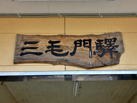 県道113号を南へ2㎞ほど進んで海の方へ左折すると、正面にJR日豊本線の「三毛門駅(みけかどえき)」の駅舎が見えてきたのでここに車を停めました。