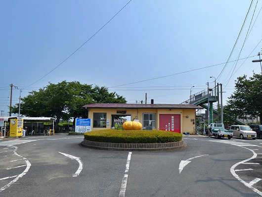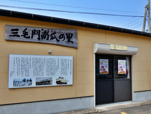 駅前には「三毛門南瓜の里」と看板が掲げられた建物があって、建物の壁には三毛門カボチャの由来などが書かれた説明板が掲示されていました。