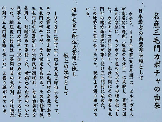 これを読むと「三毛門カボチャ」は450年前にポルトガル人が豊後の大友宗麟に献上したのが起源と書かれていました。これってもしかしたら大分県で「宗麟かぼちゃ」と呼ばれている日本最古のカボチャのことなんでしょうか?