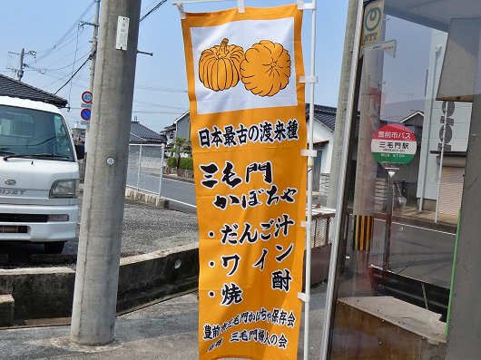 建物の前にはこの様な幟も立てられていて、この地域ではだんご汁、ワイン、焼酎の原料など、様々な用途に三毛門カボチャが利用されているようですね。
