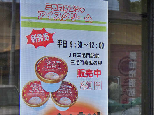 そしてここでは三毛門かぼちゃのアイスクリームも販売していました。この日は熱中症警戒アラートが出ているとても暑い日だったので、冷たいアイスを買いたかったんですが、残念なことに販売は12時までとなっていて、営業を終了していて買うことができませんでした。