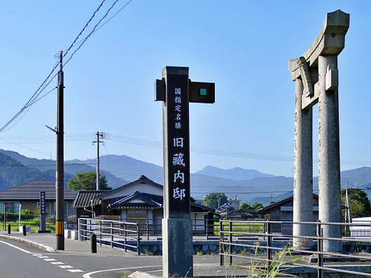 県道237号は東九州道の築城ICの横を過ぎて数kmほど進むと、国指定史跡「旧蔵内邸」と書かれた標識が見えてきます。蔵内邸は炭鉱などで財を成した蔵内次郎作(くらうちじろさく)氏の旧邸宅で、文化財に指定されている日本庭園や旧邸宅などがあるので、一度は訪れてみたいところなんですよね。
