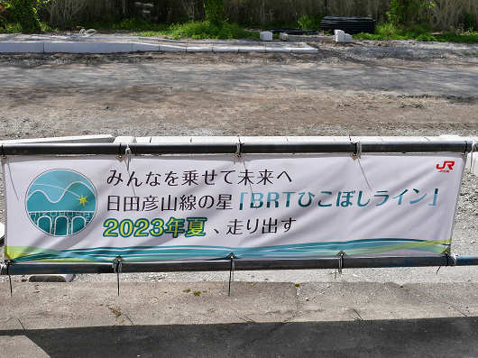 大分方面はまだ舗装工事が行われていませんでしたが、「BRTひこぼしライン」はここから終点の日田市 夜明駅まではまだ7kmほどあって、一部の区間は一般道も走行するそうなのでどこまで工事を行うんでしょうね? 余談になりますが、夜明駅(よあけえき)って素敵なネーミングの駅ですが、昭和の歌謡曲で石橋正次さんが歌って大ヒットした「夜明けの停車場」そのものですね(笑)
