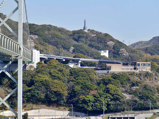 そのすぐ横の山には「めかりPA」があります。関門橋から「めかりPA」へと続く進入路も見えていますが、これは上り専用なので壇之浦PAから本線に戻って関門橋を渡ってもここへは行けないんですよね。