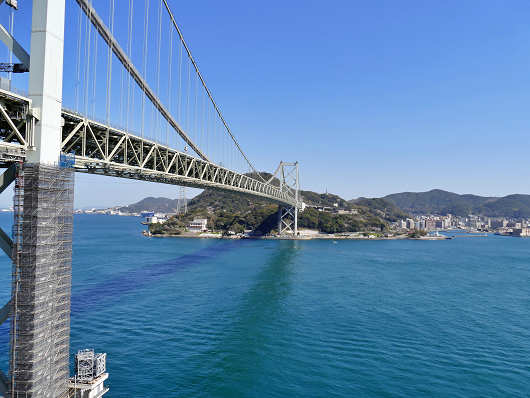 壇之浦PAから眺めた関門海峡と関門橋です。対岸はもう九州になるので、ここが本州で最後のPAになります。ここは本州方面へ出かけた時には帰りに必ず立ち寄るPAですが、この光景を見るとやっと九州が目前になったと感じてホッとするんですよね。