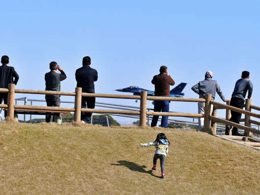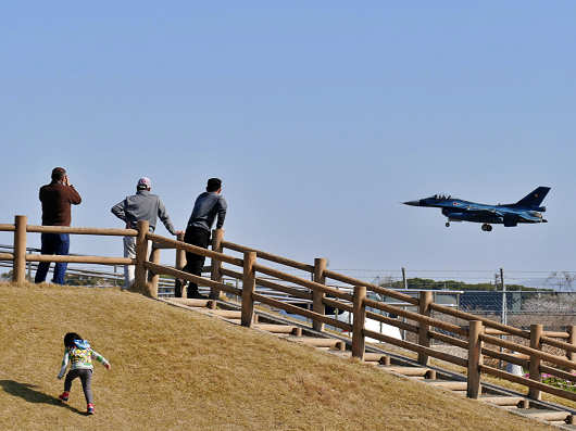 この時は公園の駐車場から戦闘機の見物をしただけですが、展望台の上には何人もの見物人がいて、小さな女の子も戦闘機を見たいのか?必死になって展望台の斜面を登っていました。
