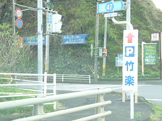 用作公園から国道57号線を竹田市方面へと進んでると、P竹楽の看板が道路沿いにいくつも出ていました、