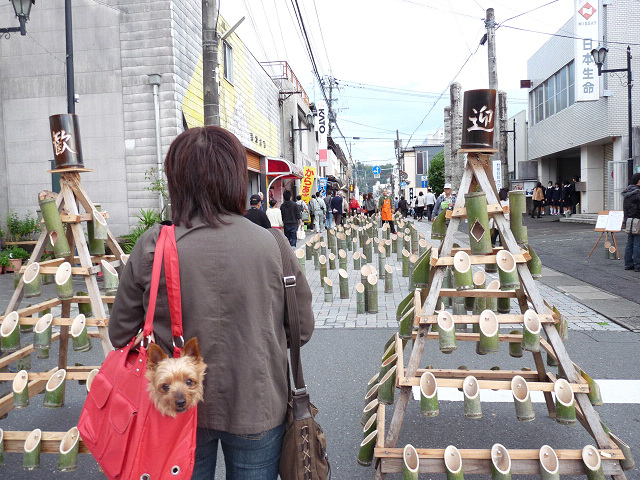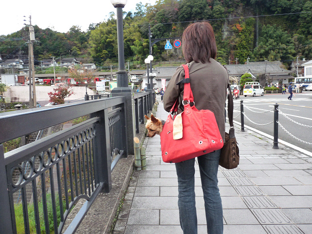 竹楽の見学に1時間半かかってやっと豊後竹田駅へと戻ってきました、パパもママももう歩く気力が無いらしく、駐車場まではシャトルバスに乗って戻りました、僕はずっとバッグの中だったからほんとうは歩きたかったんだけどなぁ、これから来た道を戻って用作公園のライトアップされた紅葉を見てお家へ帰ります、
