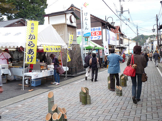まだ明るいから人通りもそんなに多くないよね、でも道路沿いにはいろんなお店が出てました、大分名物とりのからあげがあるよ、僕の大好物なんだよね、