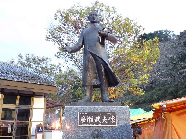 西の宮神社の前には竹田市出身の明治の海軍軍人・廣瀬武夫の銅像もあります、