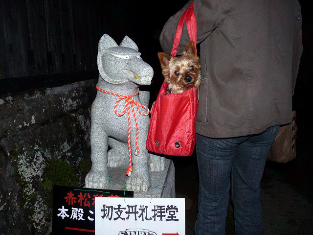 あたりはだんだんと暗くなり始めて、竹灯篭に火が灯され始めていました、ここは西の宮神社だよ、