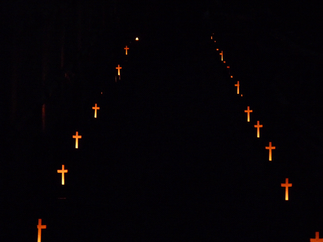 切支丹礼拝堂らしく竹灯篭も十字架だよ、ここでは賛美歌(?)のミニコンサートも行われていました、