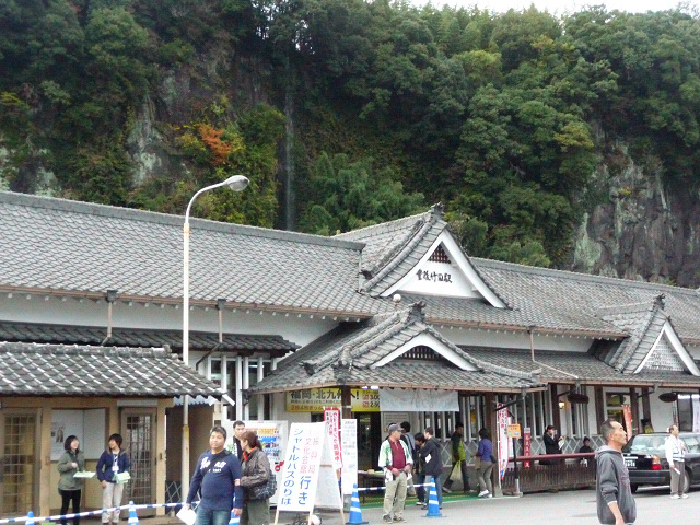 駅舎は滝廉太郎の作曲した荒城の月のモデルと言われてる岡城を模して造られてるんだって、そして国鉄の時代から列車が到着すると荒城の月の曲が流れてるんだよ、駅舎の裏には落門の滝っていう落差40mの滝があってここからでも見えるんだよ、