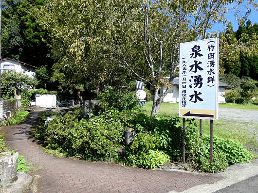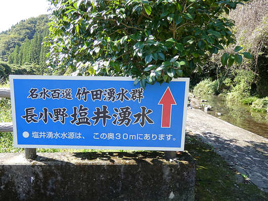 県道8号は竹田市街地を抜けて、宮崎県五ヶ瀬町まで続いている県道ですが、竹田市街地を過ぎてしばらくすると「竹田湧水群」と書かれた看板が見えてきました。竹田湧水群は竹田市内に数十ヶ所もの湧水スポットがあるといわれていますが、県道8号のこの辺り(入田地区)には5ヶ所の湧水スポットがあって、お目当ての奇岩もこの先にあるので、まずはこれらの湧水スポットへ寄ってみました。