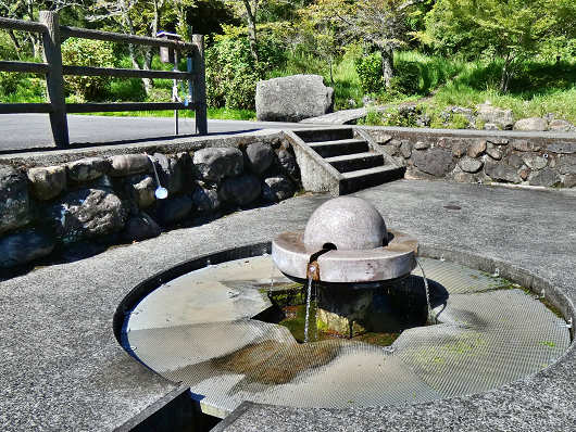 駐車場の横には蛇口のようなところから水が出ていて、横には水を汲む柄杓もありましたが・・・