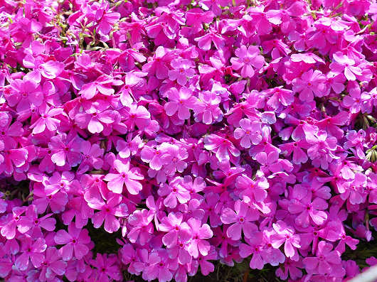 ここが芝桜の植えられている畑です。少し緑も混じっていますがとてもきれいですね。