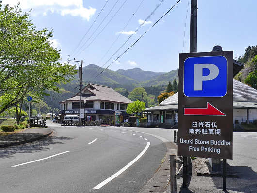 芝桜が植えられているのは「臼杵石仏公園」なので、石仏見物の観光客が車を停める手前の広い駐車場へは車を停めずにさらに先へと進みます。