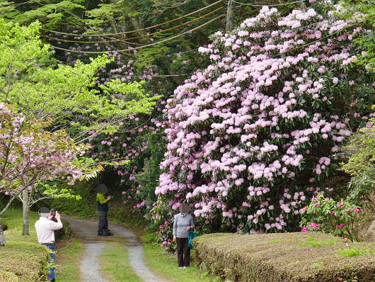 シャクナゲの巨木の前では記念撮影をしている人もいましたが、この画像を見るとシャクナゲの大きさがよく分かりますよね。