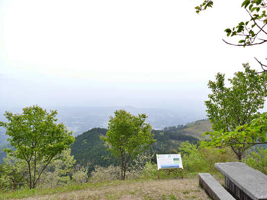 シャクナゲの観賞をしながら展望台までやって来ました。ここからは豊後大野市大野町の町並みが望めますが、この日は黄砂の影響なのか?空気が霞んでいて町並みはほとんど見えませんでした。