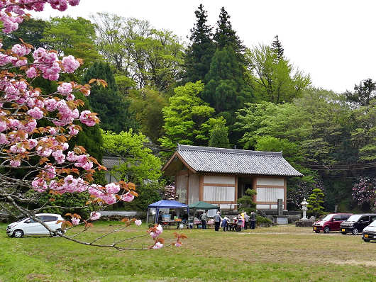 展望所から車を停めた山門前の広場に戻ると、いつの間にか駐車場にはたくさんの車が停まっていて、山門の前に張られたテントの前では何人もの人たちが、お茶を飲みながらワイワイガヤガヤと賑やかにおしゃべりをしていました。