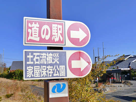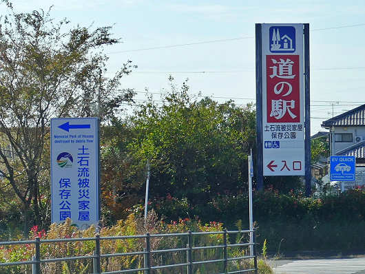 水無川に架かる橋を渡ると、道の駅と「土石流被災家屋保存公園」の看板が見えてくるのでここを左折します。