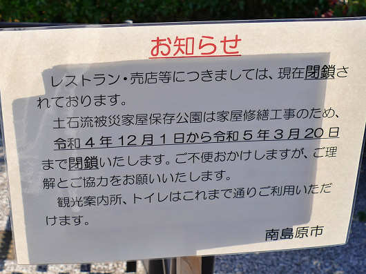 駐車場の先には「道の駅 みずなし本陣ふかえ」と、「土石流被災家屋保存公園」がありますが、まずは道の駅へ行こうとしたら・・・