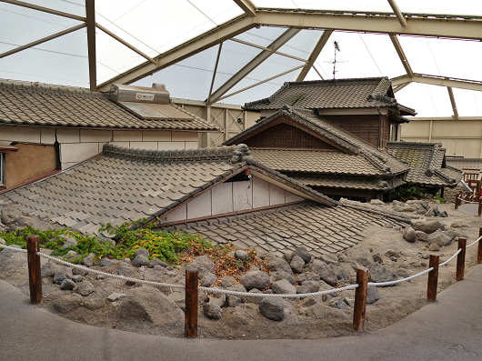 建屋の中に入ると土石流によって屋根の付近まで埋没した家屋が保存されていました。この光景を見るとかなり大きな被害があったことが分かりますが、説明板にも書かれていたように、避難勧告によって住民は避難していたので、幸いなことに人的被害は無かったんですよね。